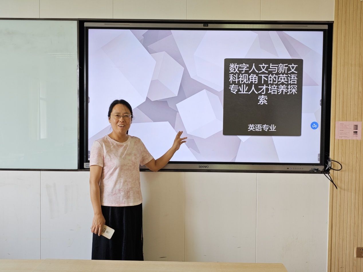 6月11日,英语专业教研室召开“数字人文与新文科视角下的英语专业人才培养探索”专题教研会。会议立足国家新文科建设与教育数字化战略背景,以跨学科融合与技术创新为驱动,结合语言智能、数字人文研究及国际化复合型人才需求,深入探讨英语专业在数字化转型中的改革路径与实践创新。本次会议由曹艳琴教授做主题报告,金培玉副主任主持,英语专业全体教师参会。