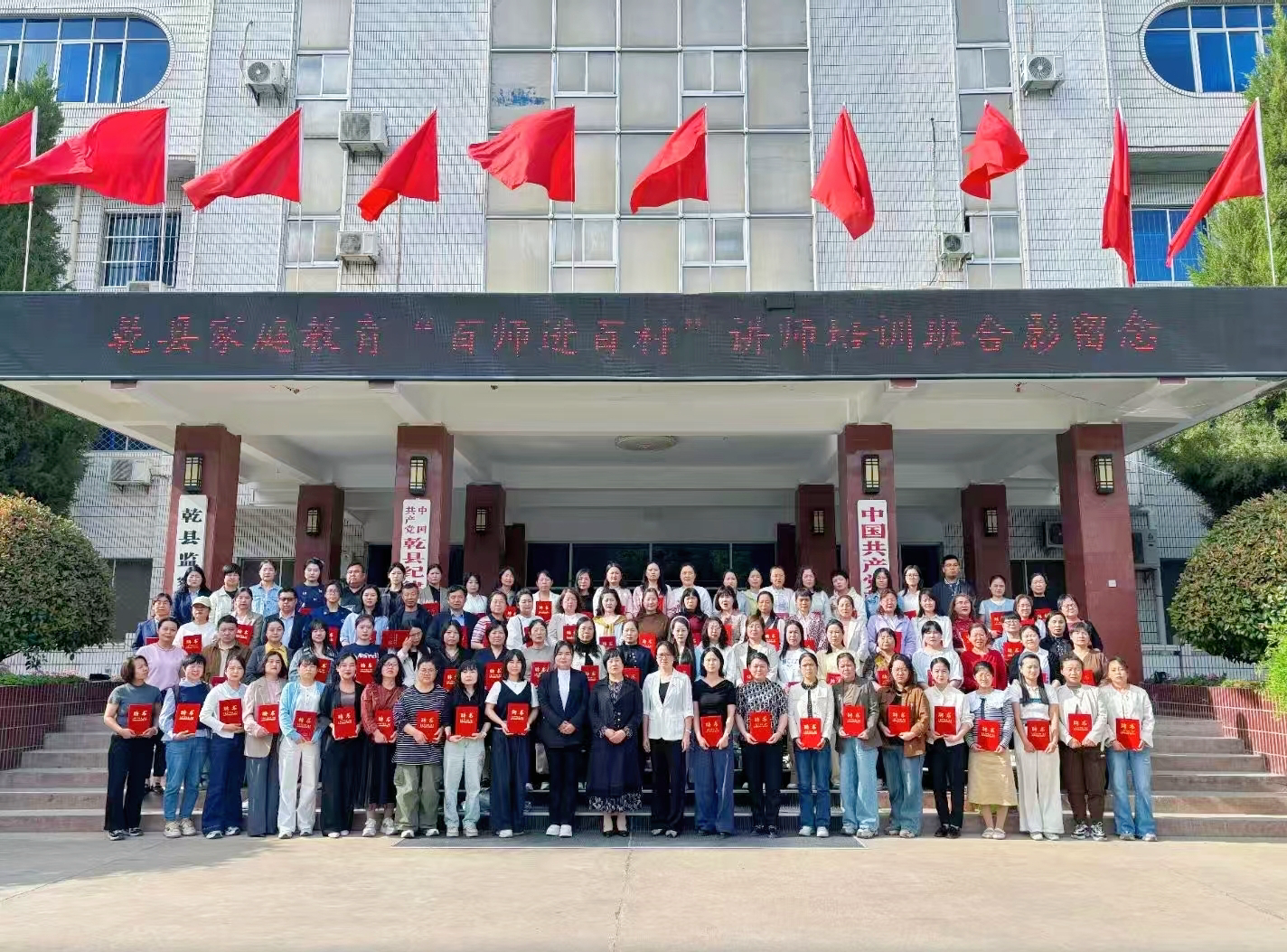 本次“百师进百村”师资培训活动是乾县贯彻落实习近平总书记关于家庭家教家风建设重要指示的生动实践,也是校地协同育人的创新探索。通过专家引领、实证研究与实践指导,参训教师不仅提升了家庭教育专业能力,更明确了“为国教子、以德育人”的使命担当。未来,我院将以此次活动为起点,持续深化家校社协同育人机制,让科学教育理念在乾州大地落地生根,为乡村振兴注入强劲的“家“力量。