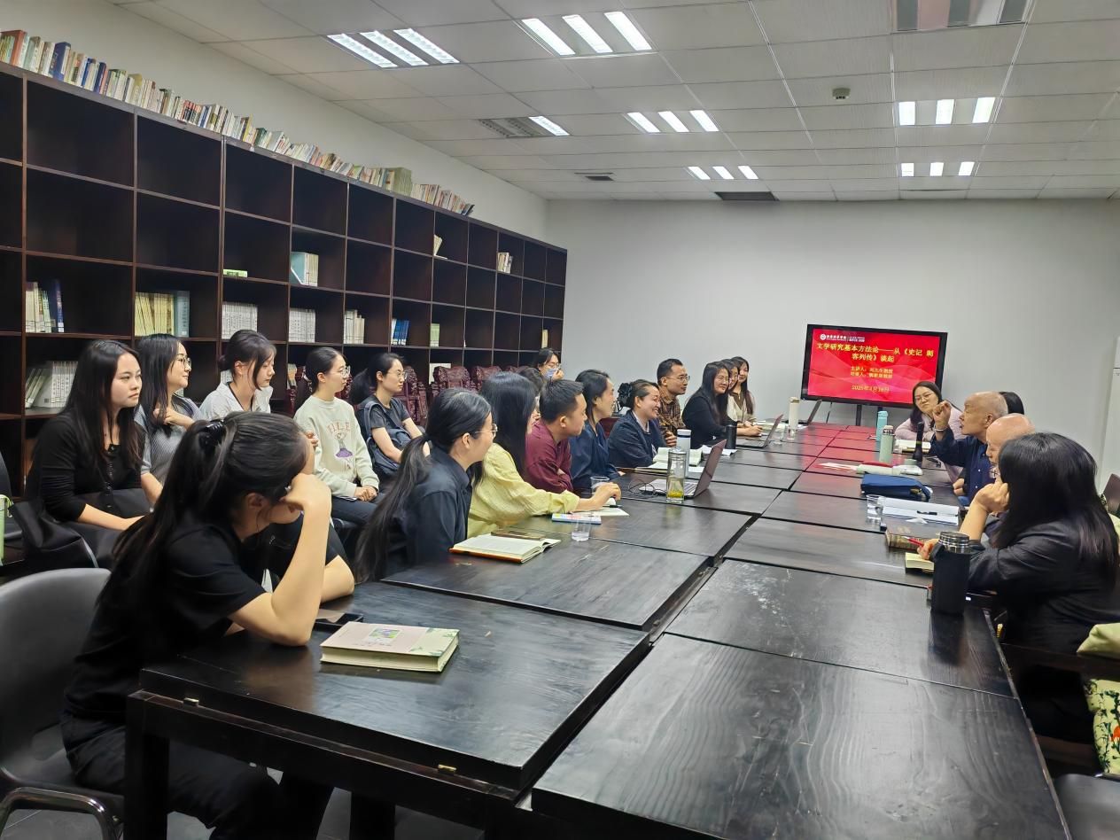 为深化文学研究方法论教学,促进青年教师学术成长,2025年4月16日下午三点,中文系特邀陕西师范大学著名学者刘九生教授在国学馆开展题为“文学研究基本方法论——从《史记·刺客列传》谈起”的专题讲座,西安培华学院教授魏耕原老师作为对谈嘉宾,共同开启一场学术盛宴。本次讲座以经典文本为基点,深入探讨文学研究的创新路径与学术坚守。讲座由中文系文学教研组组长崔雅男老师主持,教研组全体教师热情参与。