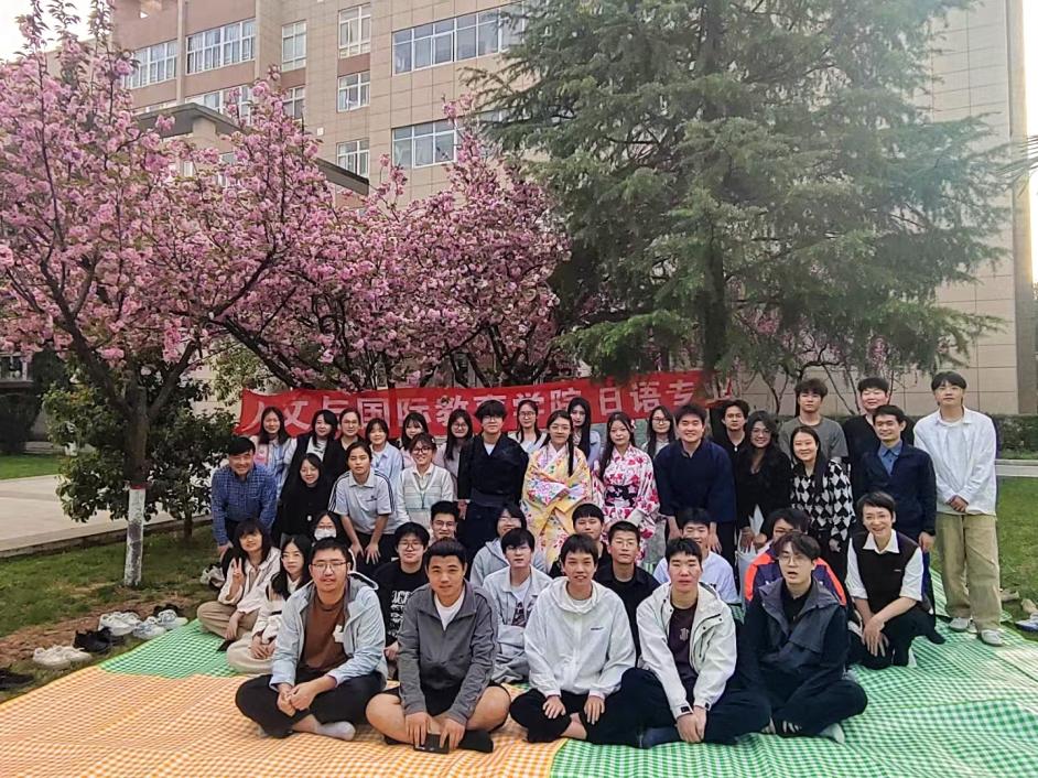 实践环节将活动推向高潮。同学们一起品尝樱花糕,进行语言游戏,与此同时开展了和服体验活动,同学们自由拍照留作纪念。最后,全体师生在樱花纷飞的草坪拍摄纪念照,为活动画上诗意句点。