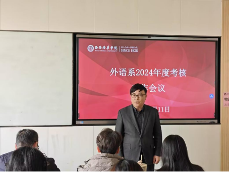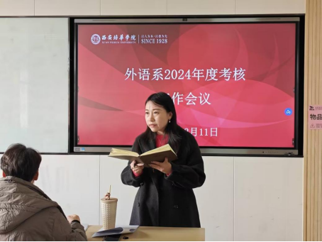 李国栋主任做了会议总结。他强调,外语系全体教师要高度重视高质量绩效考核,并能认识到考核工作关系到学校各项事业的发展;要充分重视考核工作中的硬性指标,增强各部门之间的协同,明确职责,主动作为,积极查缺补漏,总结经验,保质保量完成年终考核各项工作。在新的一年里,外语系教师要在原有的工作基础上,进一步总结经验,创新思路,为学校的高质量发展贡献力量。