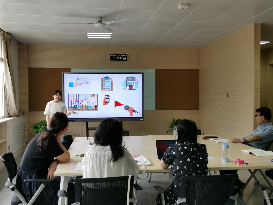 霍文娜、李蓉儿、杨怡璇三位老师分别展示了本学期讲授课程的课件,以说课的形式介绍了本学期课堂教学的准备情况、课堂组织、课后作业等。
