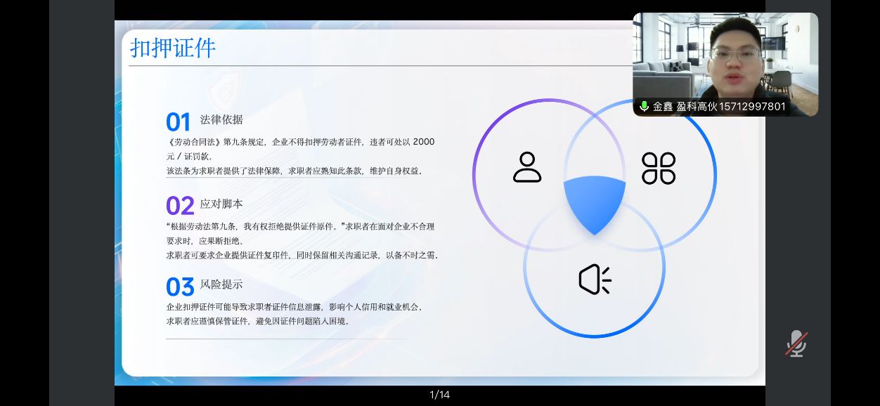 金鑫律师结合多年实务经验,深入剖析了应届生在求职中可能遭遇的常见法律隐患。他重点指出,部分企业通过“高薪承诺”“模糊合同条款”“试用期陷阱”等方式侵害求职者权益,并强调“所有口头承诺均需以书面合同为据,否则维权难度极大”。针对“入职缴纳押金”“扣押证件”等违法行为,金鑫律师提醒学生坚决拒绝并留存证据,及时向劳动监察部门举报。此外,他还详细解读了《劳动合同法》中关于薪资构成、五险一金缴纳时限等规定,强调“用人单位须在入职30日内为员工缴纳社保,试用期不缴属违法”。