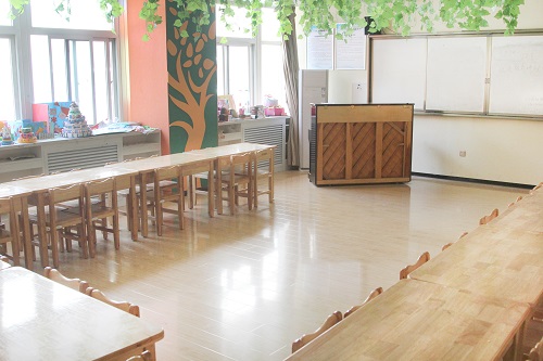 该实训室主要是模拟幼儿园的教室,给予学生一个逼真的幼儿园教育情境。学生可以在此模拟幼儿园一日活动和各类教学活动的场景,充分感受和体验幼儿教师的工作内容,训练其专业技能。我们这个实训室遵循“以人为本”的教育理念,表现在桌椅的制作上,在按照幼儿园幼儿使用的桌椅标准的基础上,将桌椅的比例放大,更加符合大学生身体条件和桌椅规格的协调;。其次我们实训室的特色就是在模拟教学场景的同时,配备vr虚拟设备,同学们在上课的同时,可以随时远程观察合作园所真实的上课情景,通过观察和模拟体验,让学生真实体验幼儿园日常教育活动的开展。