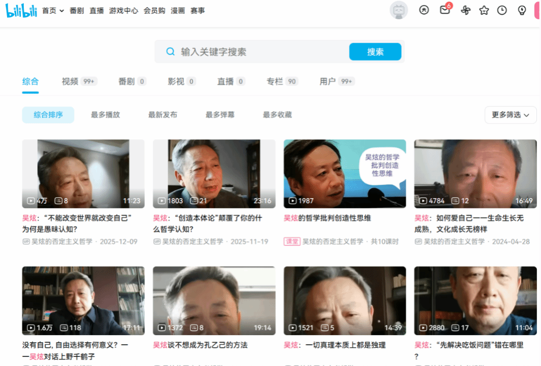 吴炫教授的思想不仅在学术殿堂熠熠生辉,更通过B站等新媒体平台走向大众。其视频《“不能改变世界就改变自己”为何是愚昧认知?》播放量超4万次,获赞超6000,引发广泛讨论,展现了学者“以思想启蒙时代”的独特魅力。