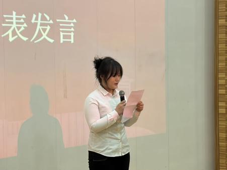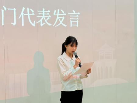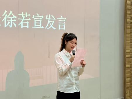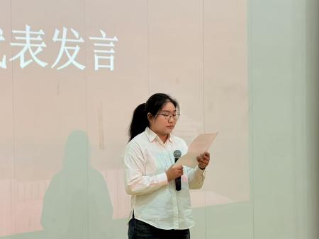 随后,干事代表徐若宣上台分享了加入团委一学期的成长与蜕变。她细数在部门工作中完成的各项任务,谈及自身从青涩懵懂到熟练上手工作的转变,也复盘了实践中积累的经验与不足,更规划了后续的工作方向,朴实的话语里尽显团委干事踏实奋进的作风。