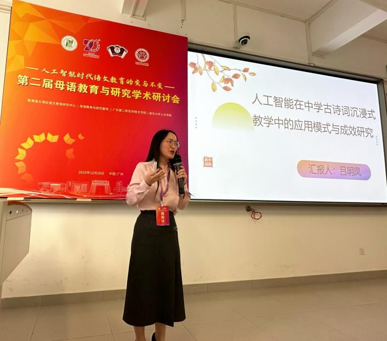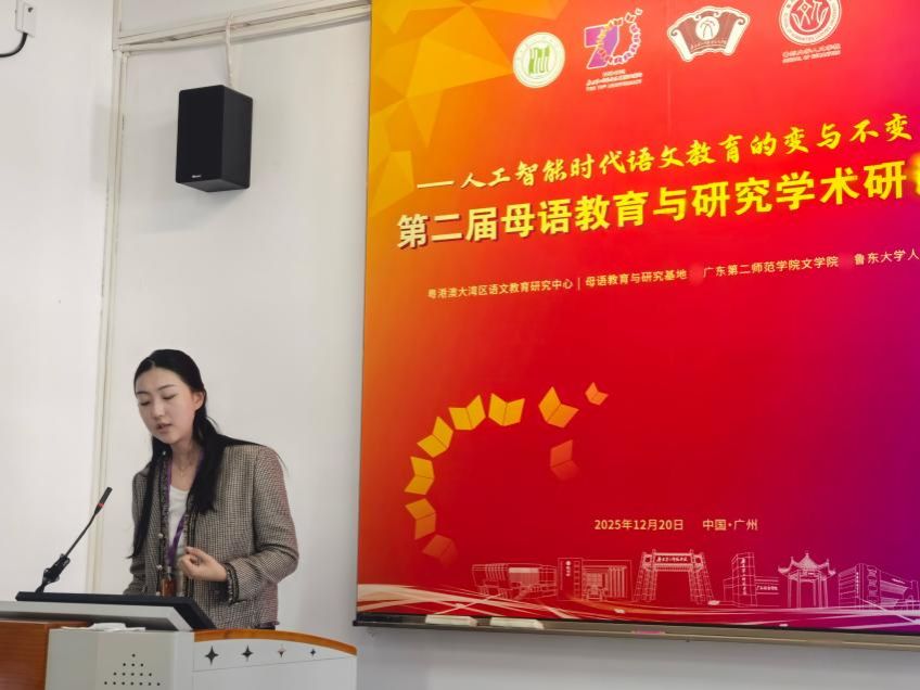 2025年12月20日,由粤港澳大湾区语文教育研究中心、母语教育与研究基地、广东第二师范学院文学院、鲁东大学人文学院联合举办的“第二届母语教育与研究学术研讨会”在广州隆重召开。我院亢世勇教授作为嘉宾在主会场进行了专题报告,人文素养与语文教育教研室教师吕明风、杨皓明、党书琪出席了会议并在分会场中做学术报告,和与会专家同行进行了深入交流。本次学术研讨会聚焦人工智能技术尤其是大语言模型的快速迭代对语文教育带来的机遇和挑战,以“人工智能时代语文教育的变与不变”为主题,邀请了多省市的一线教师和科研学者,为更好地推动母语教育与研究工作展开了深入研讨。