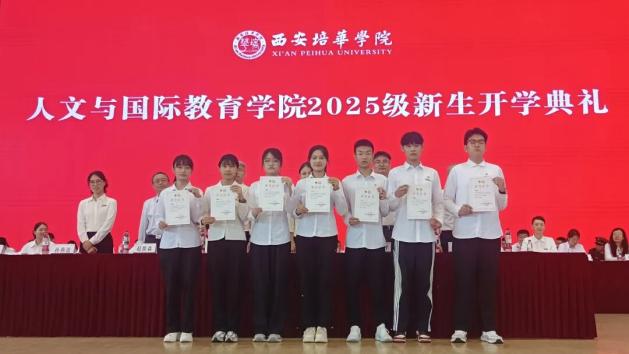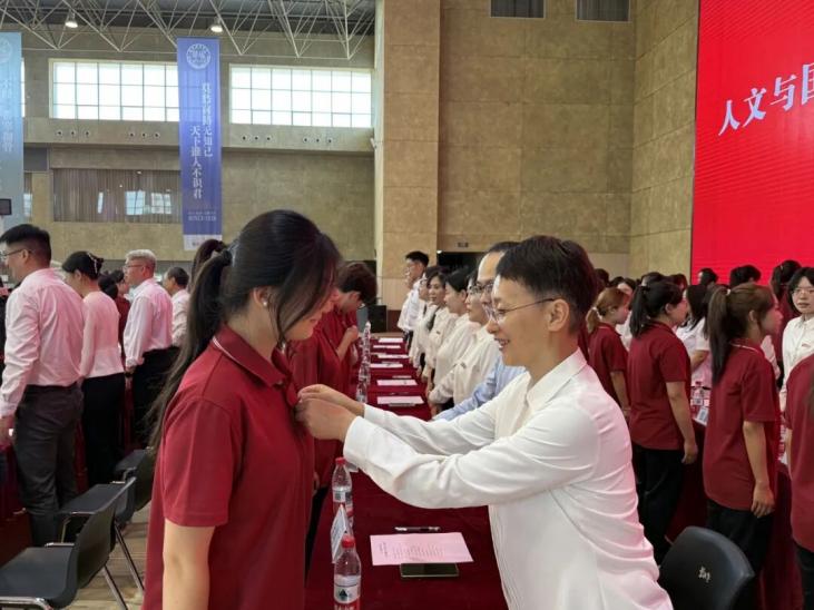 闪耀的校徽被郑重地别在新生代表胸前,它印刻着西安培华学院“校誉至上,质量第一,自强不息,开拓前进”的校训精神,标志着新生们正式开启了在人文与国际教育学院的成长旅程。