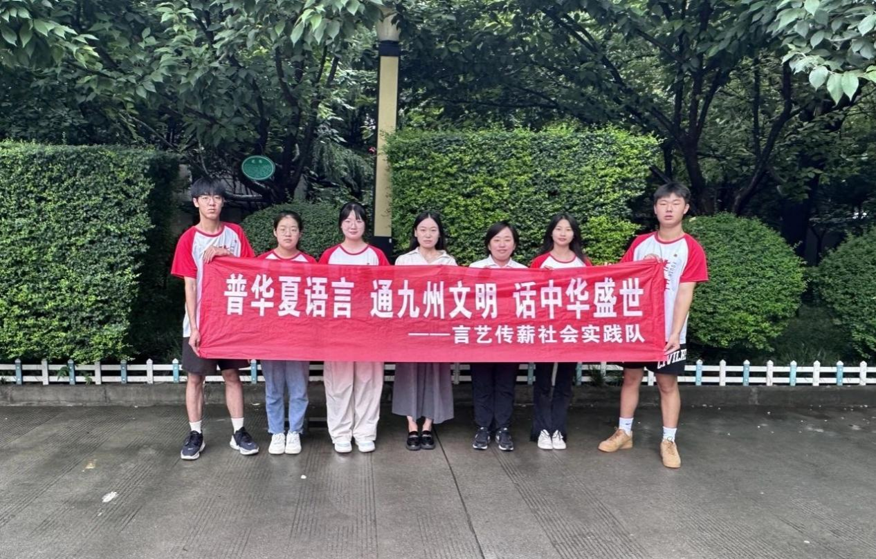 会后,言艺传薪社会实践队代表与两位书记进行合影留念。程副书记注意到横幅内容和队伍名字讲道:“我发现这些都体现了你们汉语言文学专业素养。”这次会晤总结也是对言艺传薪社会实践队暑期三下乡画上圆满的句号,也将在未来的日子里,持续致力于普通话的普及工作,将这份信念传递给更多的人。