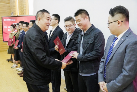 西安培华学院监事会主席、党委副书记、纪委书记、工会主席徐国富宣读《关于日语、汉语言文学、学前教育专业校友会的批复》并为新聘任的日语专业、学前教育专业、汉语言文学专业校友会理事授牌并颁发聘书