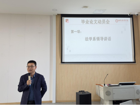 大会伊始,法学系马亚乐主任做重要讲话。他首先对各位到场的论文指导老师的研究方向做了介绍,方便学生选择自己擅长的领域。接着他强调毕业论文的重要性,毕业论文是同学们对专业领域的深度探索和理解,更是同学们综合素质的集中体现。无论是从学术成就还是个人成长的角度,都必须高度重视学位论文的撰写。然后马主任重点指出同学们在写作过程中应熟练掌握WPS等写作软件的应用,提醒学生严格按照法学系论文格式范本进行论文书写。并且提出学生在论文内容部分应注意选题和论文框架结构。最后希望同学们能配合论文指导老师认真完成本次毕业论文的全部工作。