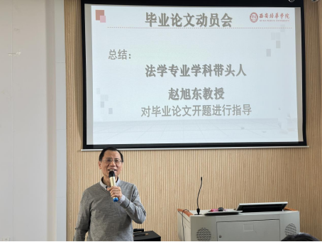 为进一步落实西安培华学院人文与国际教育学院法学系2024届毕业生学位论文工作的规范化管理,确保2024届毕业生毕业论文工作顺利开展,法学系于2023年10月13日12:50于3506教室召开了2024届毕业生论文动员大会。参加本次动员大会的人员有法学系专业学科带头人赵旭东教授,法学系主任马亚乐老师,法学系副主任李倩老师和全体法学系论文指导教师。会议由法学系论文组负责人田思雨老师主持。