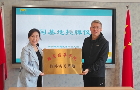 为提高学前教育专业学生技能水平和职业素养为目标,2023年10月10日,我校学前教育系主任栾博强,副主任王璐露前往阎良第三幼儿园,由王喜平园长、教学园长丁楠组织接待,双方负责人展开本次实习相关工作的沟通,并成功举行了西安培华学院校外实习基地授牌仪式!
