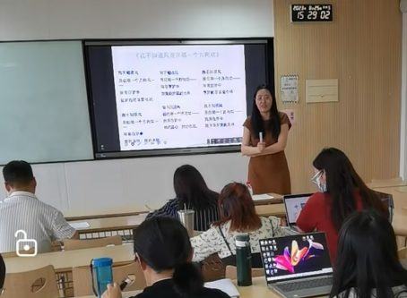 在每人为时10分钟的讲课活动过程中,全体青年教师都在规定的讲课时间内进行了精彩的课堂内容呈现。其中,何佳宁老师以“哈姆雷特的忧郁”为切入点,深入剖析了莎士比亚戏剧创作的思想情感及写作风格。段玉祯老师以文学创作作品中具体的艺术构思为导入,讲授了文学作品整体构架的形成、艺术形象的设计及情节的演变发展。翟佳桦老师对史学名家选讲这一课程进行了细致的导读,为讲好新学期第一课做了充分准备。庞欢老师、罗妮老师及王中俊老师对每位青年教师的讲课内容及授课方式提出了指导性建议。