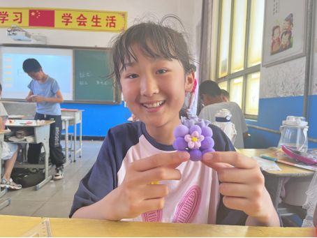 以美育人、以文化人。美育帮助学生艺术修养,引导学生认识美、感受美,更重要在于创造美。为培养学生动手动脑能力,志愿者张米兰为学生们开展了一节黏土小课堂,实行教与实践相结合的教学方式。在课堂中,张米兰为孩子们讲解三原色配色的基本原理,同时也向学生们分享自己作品,引导学生用彩泥来表现生活中的事物。随后,学生们用自己的独特想象力去进行实践。在创作过程中,学生们发扬团结合作的精神,具有人格的培养、心灵的净化双重价值,激发学习的动力,培养学习的兴趣。