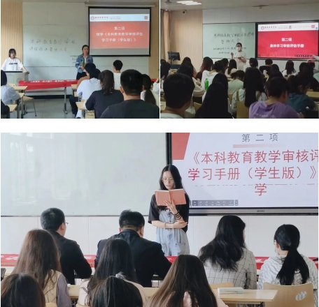 大会第二项,班干部集体领学《本科教育教学审核评估学习手册》。