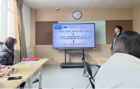 对于青年教师如何突出教学重、难点,曹副教授表示“要先理解什么叫重点、什么叫难点”,并倡导各位青年教师从学生的角度出发,思考对于学生来说什么是“主要的、关键性的知识”以及“在学习时会遇到的不易解决的困难、难以理解的知识点、容易出错的语言使用范围”。以学生为中心,以人为本,从教学设计的根源打开格局。
