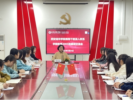 为贯彻落实《西安培华学院领导干部联系学生班级(团支部)实施办法(试行)的通知》要求。3月24日下午,西安培华学院学术委员会主席、副校长刘越莲教授与学前教育2005班在格物楼第四会议室深入开展座谈交流会。