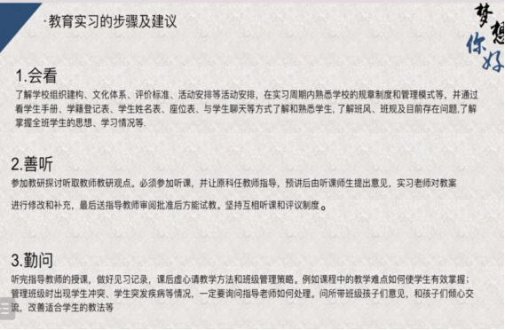 在本次职业规划研讨会中,何校长指出,教师是人类历史上最伟大且神圣的职业之一,是太阳下最崇高的职业。首先,就同学们未来参加教育实习方面,何校长提出多条建议,包括会看、善听、勤问、必讲和反思总结,并强调作为实习教师,应当多了解熟悉学生情况,善于听取同行教师的建议,在授课完成后积极反思课堂教学,不断调整教学内容,改进教学方法。
