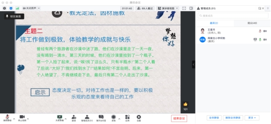 为进一步加强教育方向同学们对教师职业的认知与理解,并帮助同学们制定合理清晰的职业发展规划,外语系英语专业于2022年12月11日下午2点至4点半组织英语专业教育方向的同学们及部分教师代表参加了21级英语专业职业规划讲座网络研讨会。本次研讨会由西安市长安区周家庄小学校长何勃老师主讲,主要对教师职业生涯等方面作了全面的讲解,英语专业教师王星月主持本次研讨会。
