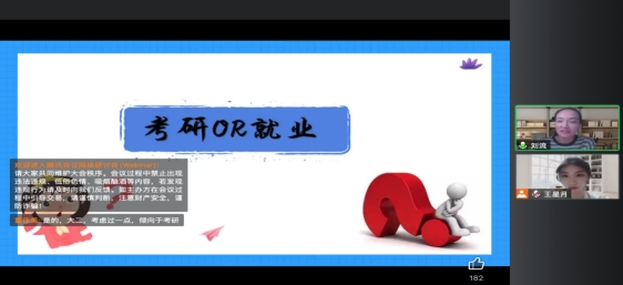 接下来刘流博士与同学们探讨为什么要考研,并且从她的个人经历总结出三点:(1)重新选择的人生。选择考研是可以变通的,可以选择不同的城市以及其他学校,也可以重新选择专业,是对自己的人生进行重新的规划,是一个不同的阶段。(2)公平竞争。考研时的竞争对手只有报考同一所院校的其他同学,这是同学们想要追求更好学校的一个全新机会。(3)更多选择的就业机会。刘流博士主要以就业举例,她指出无论同学们继续考研还是直接工作,最终目的都是找一份自己喜欢的工作,建立自己喜欢的人生,考研以后可以让自己的视野更加开阔,面对所谓的内卷社会,只有追求更好的自己,才能够拥有更好的人生。