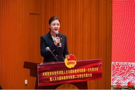 西安培华学院学术委员会主席、副校长、人文与国际教育学院院长刘越莲教授为本次大会致开幕词。她强调本次双代会是我院青年团员政治生活中的一件大事、喜事、盛事,也是对我院青年团员政治工作的认可,本次大会是我们人教学院团务工作承前启后、继往开来的新起点。各位同学要把学习作为一种责任、一种精神追求、一种生活方式,求真学问,练真本领,在勤学敏思中不断增长才干,在社会实践中不断磨砺自我,在肩负时代重任中行胜于言,在真刀真枪的实干中成就一番事业。