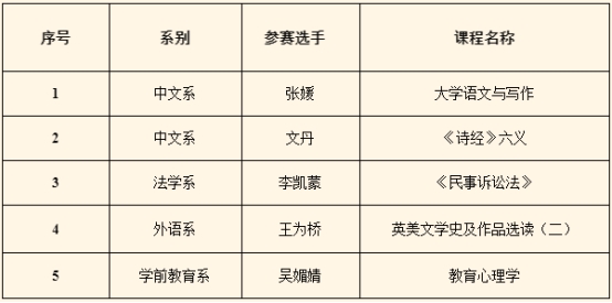 经过评委组的讨论,最终,法学系的李凯蒙老师取得本次大赛的第一名,外语系的王为桥老师与学前教育系的吴媚婧老师并列第二名,中文系的张媛老师与文丹老师获得本次大赛的第三名。