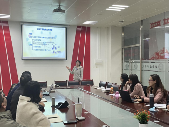首先由法学专业申子佛老师展示了民法课,以去年轰动一时的腾讯被骗案为切入点,生动讲解了表见代理的构成要件,通过具体实例使得抽象的民法理论变得通俗易懂,形象的运用法律关系图进行示意,有效实现了教学目标。