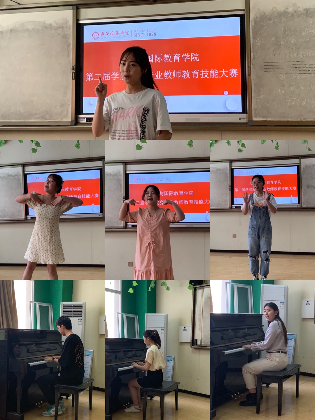 片段教学的比赛项目。该项目以给定的素材为题,设计并进行片段模拟教学,要求活动过程中完整呈现所要求的歌曲弹唱及歌表演的技能,考察学生熟练运用所学技能,设计和组织幼儿园实际教学的能力。