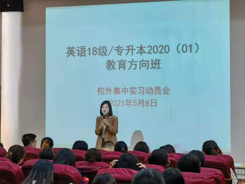 人文与国际教育学院外语系英语专业大三一级学生即将开启校外实习之旅,值此之际,我院英语专业于J101教室为英语2018级和2020级01班学生召开了校外集中实习动员大会。此次校外实习时间为2021年5月10日到2021年6月4日,涉及223名学生14所实习基地学校,规模算是英语专业史上之最,因此如何安排好此次实习也是非常重要。
