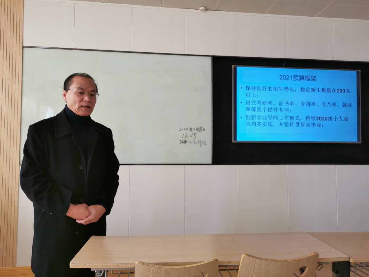 另外,甘主任针对英语专业明年的发展提出了一些要求与规划,争取明年的工作中英语专业可以从三个方面有所建树:一是招生方面保持良好的教学状态,为我们招生打好基础;二是提升本专业考研率、证书率、专四率、就业率等四个专项;三是彻底实现创新学业导师工作模式,贯穿学生整个大学四年的学习生活。
