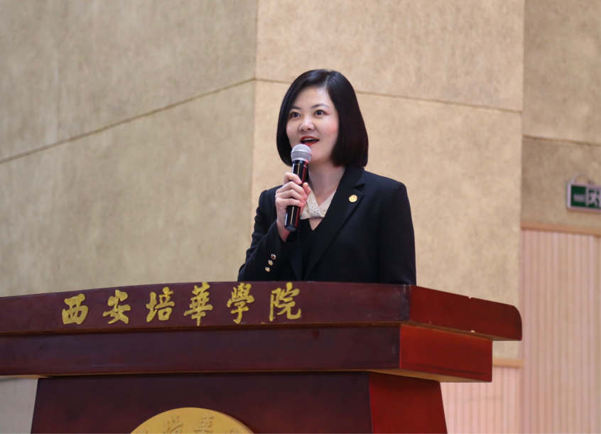 西安培华学院学术委员会主席、学位评定委员会主席、西安培华学院副校长刘越莲教授讲到:仰望星空必须脚踏实地,要逐步建立自信,管好自己,不能放任自己,创造属于自己的辉煌。同时希望大家在大学里学会学习、学会思考、学会生活。努力做有用的人、做成功的人、成为国家栋梁的人。