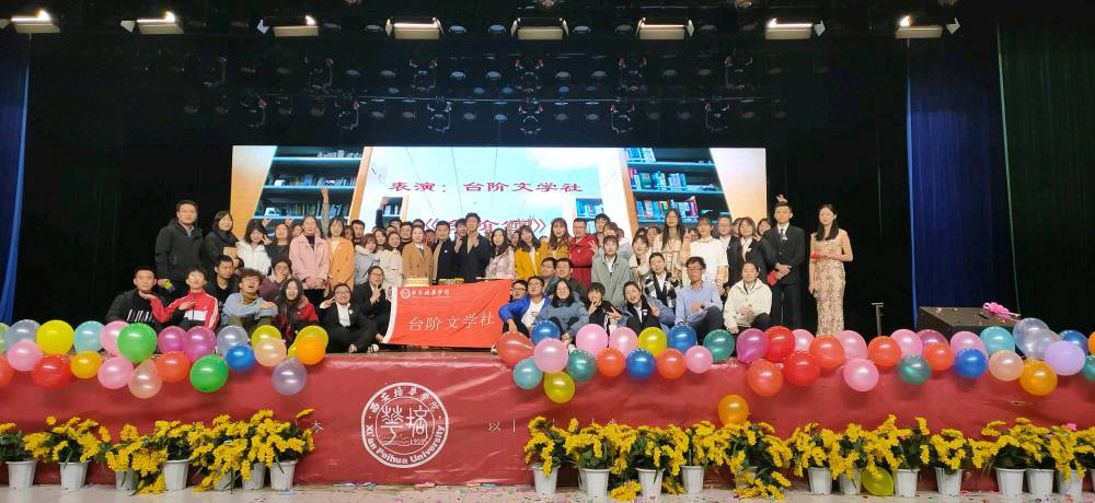 台阶文学社的兄弟社团也为台阶带来了精彩的表演,共祝台阶20岁生日快乐!活动最后,由台阶现任的三位负责人推上生日蛋糕,全场响起生日歌,我们邀请在场所有嘉宾观众上台一起分享蛋糕。镜头记录下这一美好的时刻。