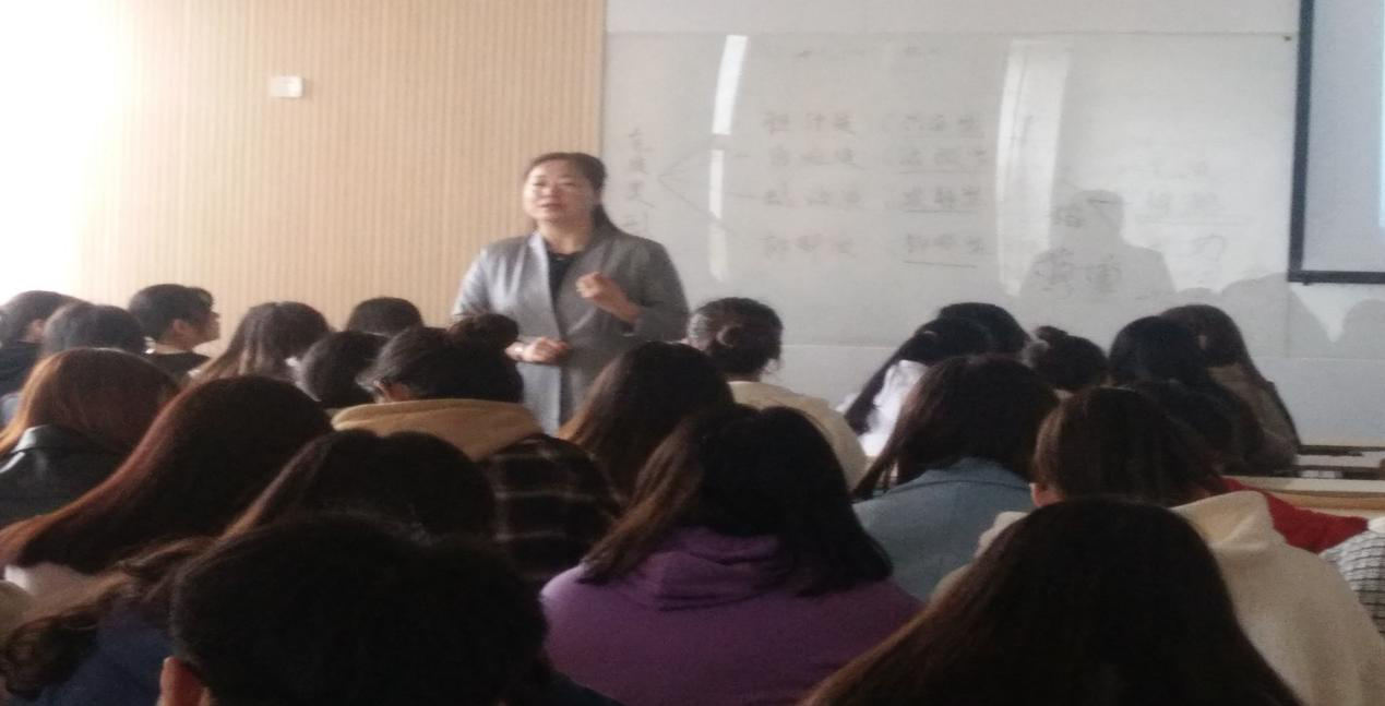马荣琴副教授激情洋溢的给同学们讲解四级口语考试的方法和技巧