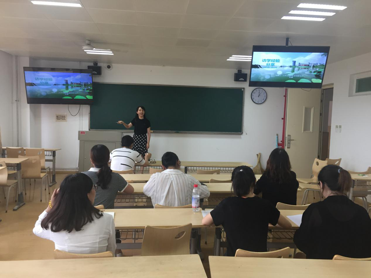 2019年7月17日下午13点,人文与国际教育学院法学系在1501教室召开了2018-2019学年访学教师经验分享会,本次会议由法学系主任赵洁主持,访学教师张婧老师主讲,法学系全体教师参加了本次会议。