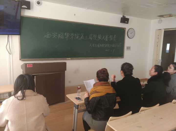 英语视频大赛是我院一直以来组织的考察我校学生英语综合应用能力以及各方面组织协调能力的一项校级英语方面的大赛,转眼间已经进行到了第三届。在这阴雨绵绵的深秋,由我院外语系组织的西安培华学院第三届英语视频大赛预赛于2018年11月9日下午14:00-18:00在我校1503-1507教室如期进行。经过全校304个班级的内部约1000个作品海选,进入预赛的有近300组作品。因此,我系组织了18名教师分为三组进行初步海选,二轮细选,三轮精选,最终选出了24组优秀视频,期待在本周周五的决赛中第三届视频大赛可以更加圆满地举办,推选出最优秀的学生作品,以期以此来引起广大学生学习英语的兴趣。