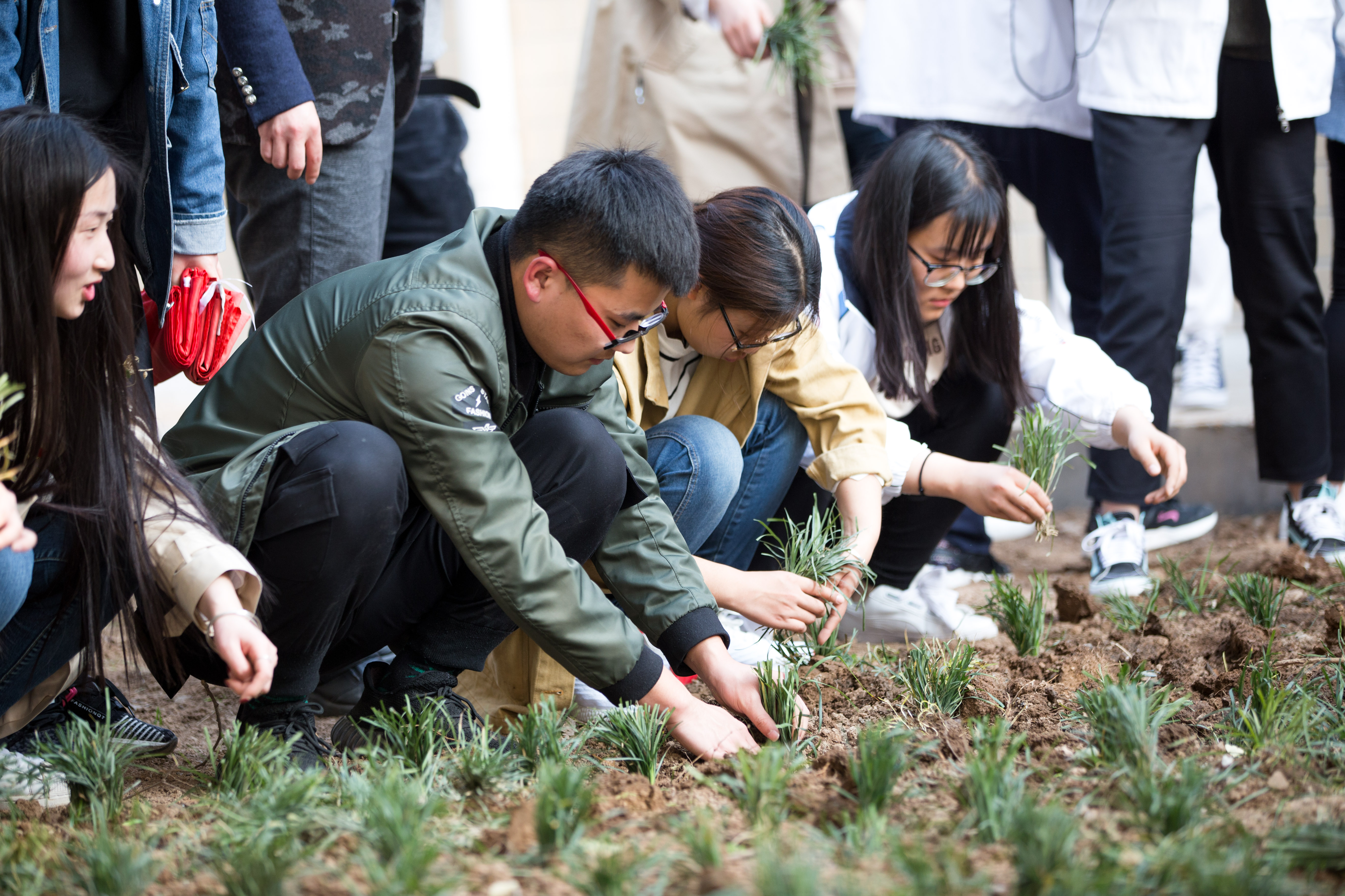 随后师生一道参与了种草活动,同学们也更是热情高涨,手持铁锹和小草,干劲十足,将一颗颗充满生机和希望的小草植入土里。