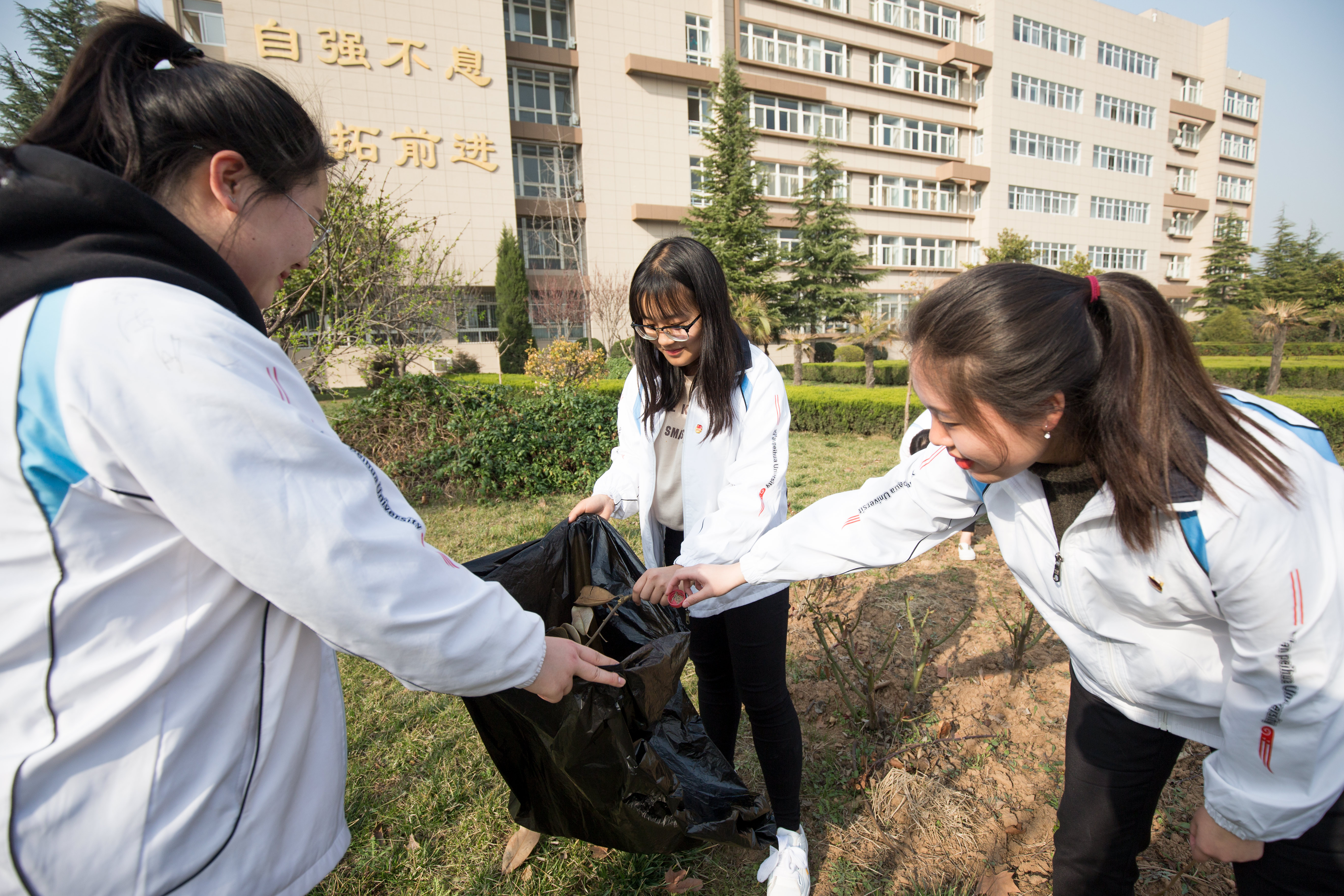 阳光正好,微风习习。活动一开始党员同志们就率先分头行动,捡拾教学楼附近丢弃的果皮纸屑,烟头落叶等,还大家一片干净的校园。
