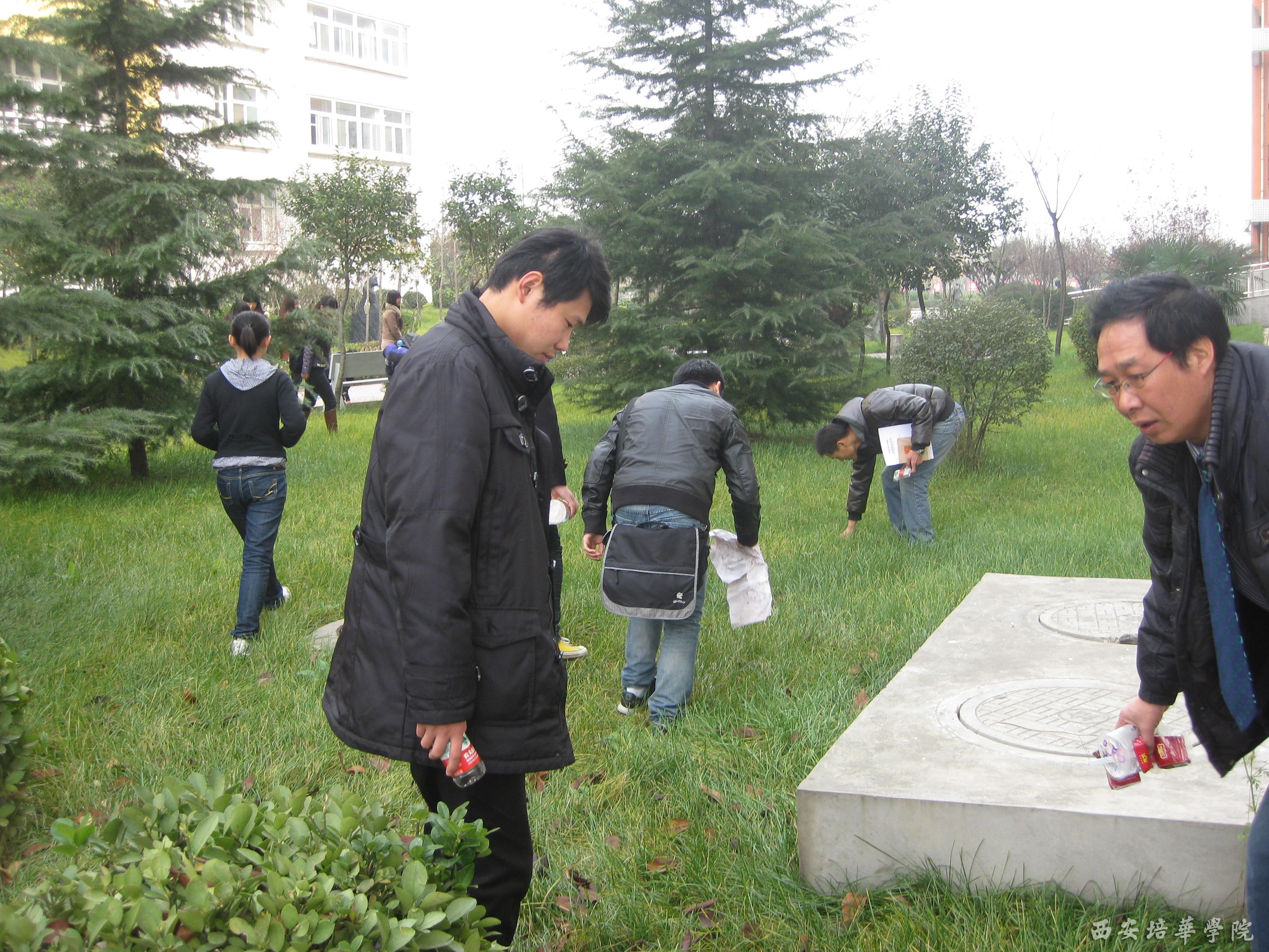 2011年12月1日中午,外国语学院毕业季主题纪念之“打扫一次卫生”活动在1号教学楼西广场举行。本次活动是2012届毕业季主题纪念“植一棵树打扫一次卫生捐一本书献一份爱心”活动之一。外国语学院院长助理兼办公室主任马平安老师,团总支书记蔡亮老师以及毕业生代表300余人参加了活动。