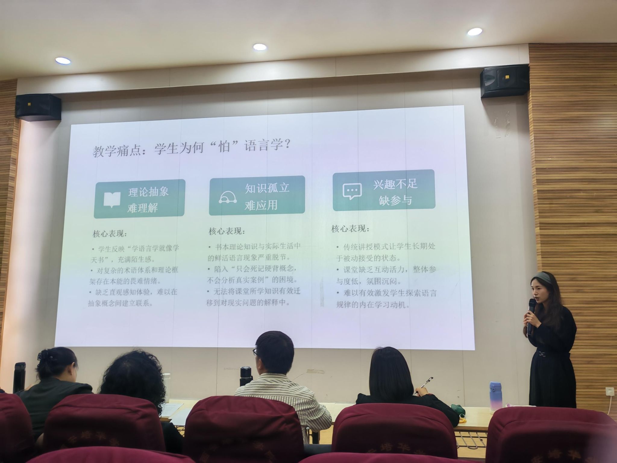 活动伊始,乔芳副院长发表致辞。她指出,教师是立教之本、兴教之源,教学创新是提升育人质量的核心动力。举办本次教学创新大赛与教学沙龙是学院深化教学改革、强化教师队伍建设的重要抓手,旨在为广大教师搭建交流互鉴、展示风采、共同成长的优质平台,推动教学理念、教学方法、教学手段全方位创新,助力文学院教育教学工作高质量发展。她鼓励全体教师以赛促教、以研促学,在教学实践中勇于探索、大胆创新,不断提升课堂教学的吸引力、感染力与实效性。
