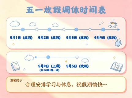 调休提醒:5月9日(周六)上课,执行第10周周一教学计划。可别睡过头啦!