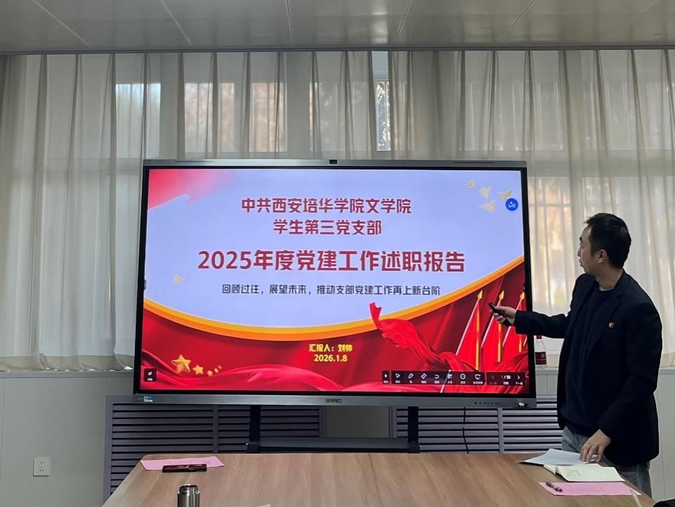 为深入学习贯彻习近平新时代中国特色社会主义思想,全面落实新时代党的建设总要求和新时代党的组织路线,切实加强基层党组织建设,根据《中共西安培华学院委员会关于开展2025年度基层党建述职评议考核工作的通知》,文学院党委于2026年1月8日在格物楼1116会议室召开党支部书记2025年党建工作述职会。本次述职会由学院党委书记南兵主持,学院党委委员、各师生党支部书记参会。
