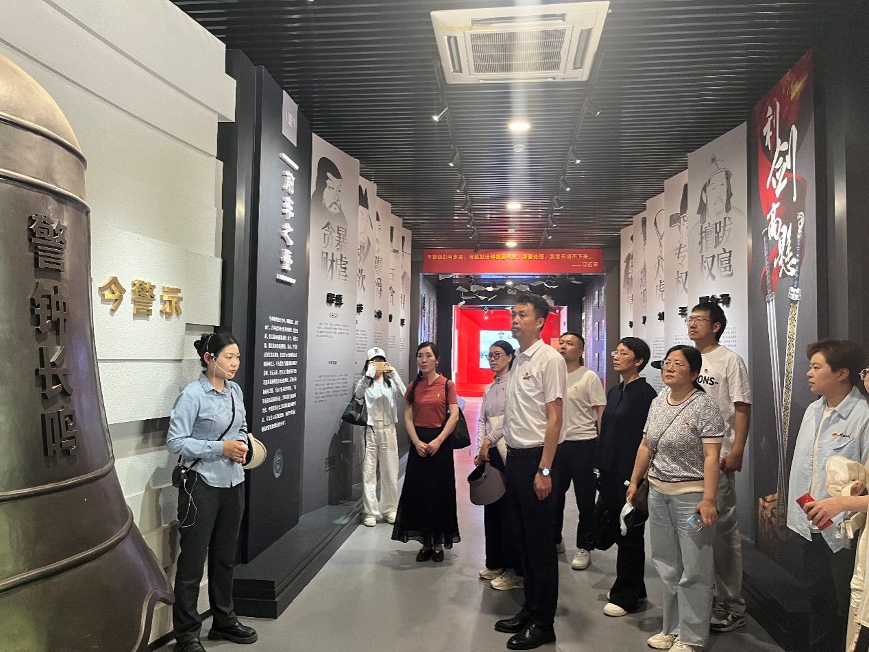 在讲解员的引领下,先后参观了四知堂、正气厅和清风廊等展区。在四知堂,通过观看珍贵的历史图片、详实的文字资料、逼真的场景复原展示,深入了解了东汉太尉杨震清廉为官、清白传家的一生,真切感受到了他清正廉洁、刚正不阿的高尚品质。在正气厅,一幅幅由全国政治、书画名家创作的歌咏杨震、歌颂廉政的作品挂满展厅,从艺术的角度传递着廉政文化的内涵与力量,让党员们在欣赏艺术之美的同时,也接受了一次心灵的洗礼。在清风廊,从西周到清代共72位清官的人物事迹及名言警句依次展示,他们的廉洁故事和崇高精神,犹如一面面镜子,让党员们对照反思,汲取榜样的力量。