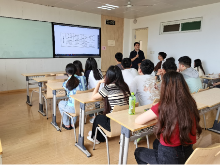 之后,王增智老师具体介绍了练习普通话的方法——样本比照法——通过“听示范音-模仿跟读-录音回听-纠错-模仿发音-录音回听”的闭环练习,反复纠正自身存在的语音问题。想要学好任何一门知识和技能,唯一途径是勤练习。他指出,练功要得法,练习并不仅仅是多读,更是要多听,找出自己说话时存在的问题,反复跟读标准发音并录音,不断回听,找出问题根源,及时纠正错误之处;王老师还带着同学们回顾了《现代汉语-语音》中的部分知识点,强调要将所学知识与生活结合,在实践中复习,在复习中实践。