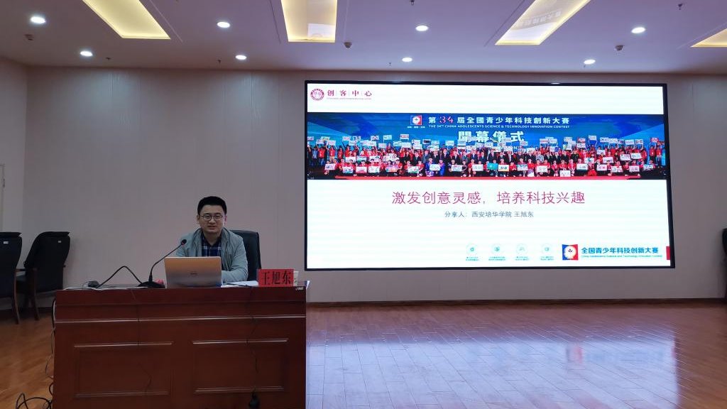 培训会上,我校创客中心负责人王旭东做了题为《激发创意灵感、培养科技兴趣》的报告。报告列举实际案例,以发现问题、创意来源、解决问题、效果验证为脉络,从创客初阶到创客进阶等维度,深入浅出的介绍了创客概念和创客活动组织、比赛的关键环节和基本经验。