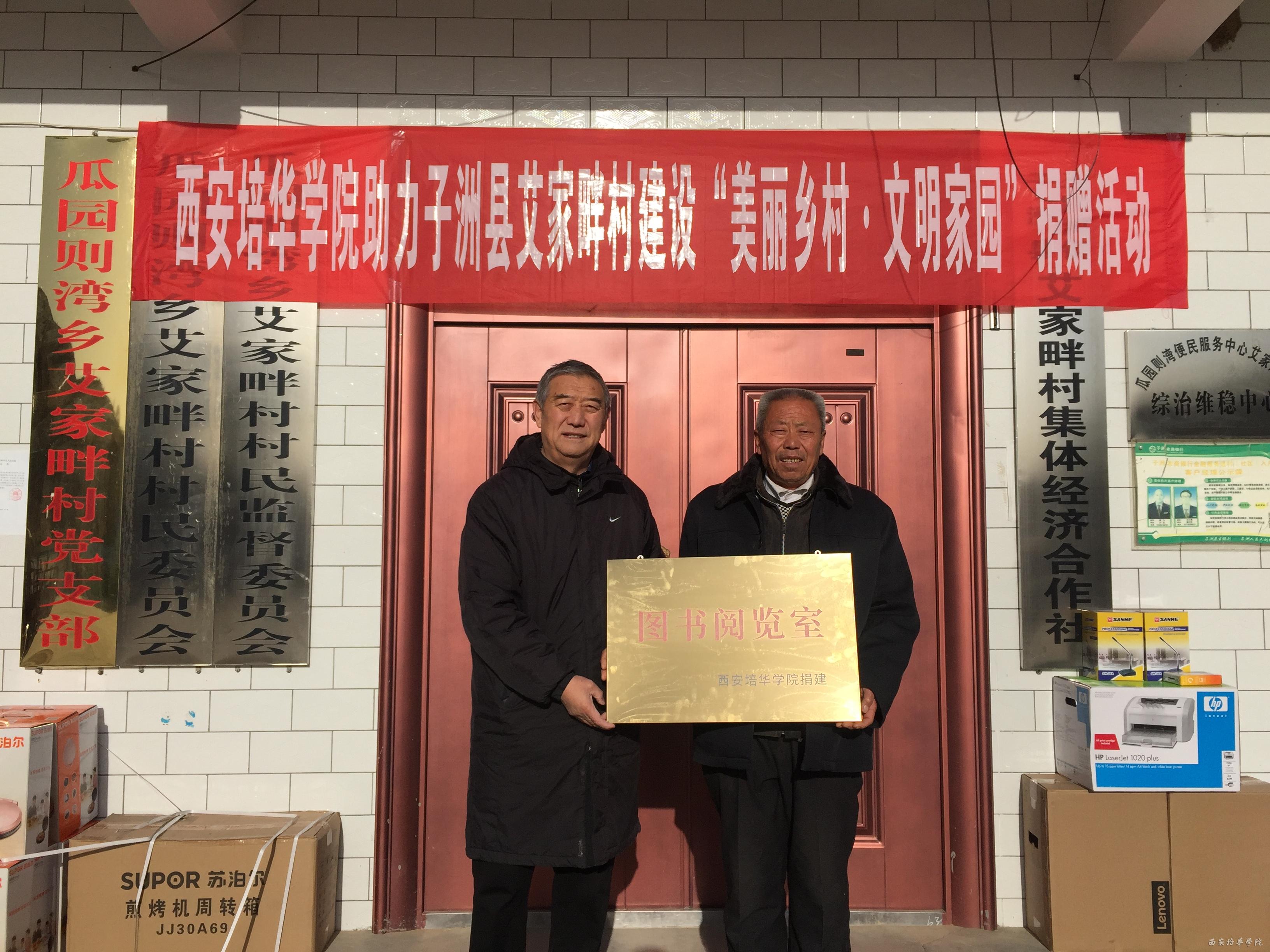 西安培华学院为该村图书室授牌