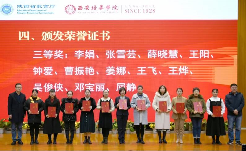 2021年12月2至3日,全省特殊教育学校教师课堂基本功展示活动在西安培华学院成功举办,本次活动由陕西省教育厅主办,西安培华学院承办。省教育厅副厅长赵昶葆、西安培华学院理事长姜波、校长李映方出席活动闭幕式并为获奖选手颁奖。