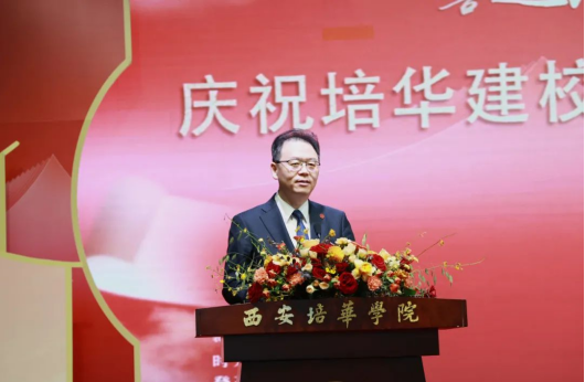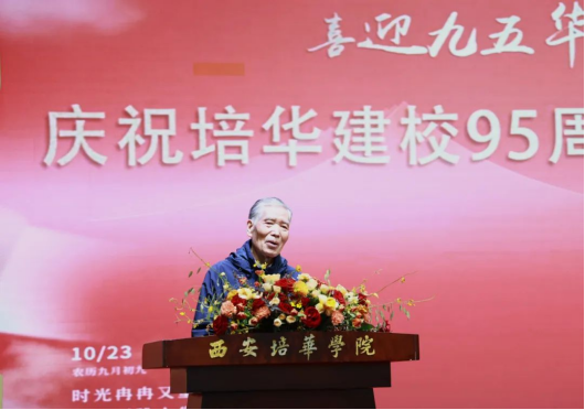 陕西省人民政府原副省长姜信真在大会上讲话,向培华建校95周年表示热烈祝贺。他指出,今天我们欢度重阳佳节,最难以忘怀的就是姜维之老校长,姜维之先生以其超常的坚毅品格,为办学付出了艰辛的努力,对培华倾注了巨大的热情和深沉的感情,成为培华发展的重要里程碑,是赢得了师生敬重与爱戴的拓荒者和教育家,是培华师生和广大校友心中高耸的丰碑与永远的骄傲!他衷心希望培华以建校95年为新起点,坚持铸魂育人,落实立德树人根本任务,传承好悠久的校史,奋力建好百年培华,努力培养更多高素质应用型人才,为阔步迈入国家高水平民办大学行列努力奋斗!