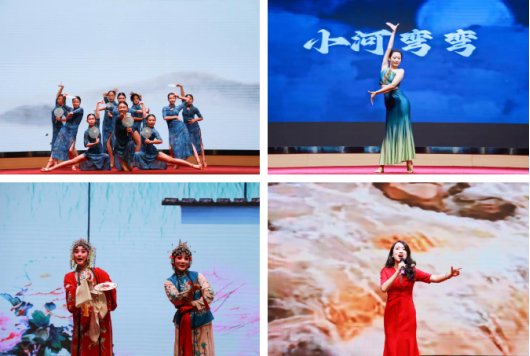 仪式结束后,特邀嘉宾及培华师生代表带来了精彩的文艺节目,大家以歌抒怀、以舞传情。传媒学院教师刘玥、学生姚俊杰主持了文艺演出环节。西安培华学院学生带来了舞蹈、诗朗诵、四重唱等多姿多彩的演绎;西安三意社罗芳华等表演中亚峰会曲目《火焰驹•表花》;西安培华学院艺术教育中心教师刘晗悦带来独唱《我的祖国》;传媒学院杜耀峰院长表演了单簧管独奏《天堂电影院》《快乐的女战士》;陕西省市劳模、西安市职工艺术家马志成及翔龙之声组合张耀坤、谢家平等八位艺术家演唱了《骏马奔驰跑边疆》《大西安龙头扬起来》等经典歌曲;赵金虎先生即兴表演了戏曲快板《教学》。精彩纷呈的文艺节目引来阵阵掌声,现场气氛热烈,温暖祥和。