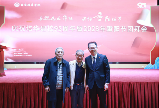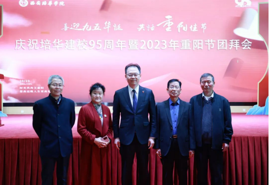 为庆祝培华建校95周年,发扬尊老爱老敬老的传统,学校隆重举办建校95周年暨重阳节团拜会,邀请在培华工作的60岁以上的教职员工、关心支持培华事业发展的各级领导、离退休老同志、历届校友、西安培华学院全体校领导出席大会,喜迎校庆、畅叙友情,传递爱心、共话发展!大会由学校党委书记罗新远教授主持。